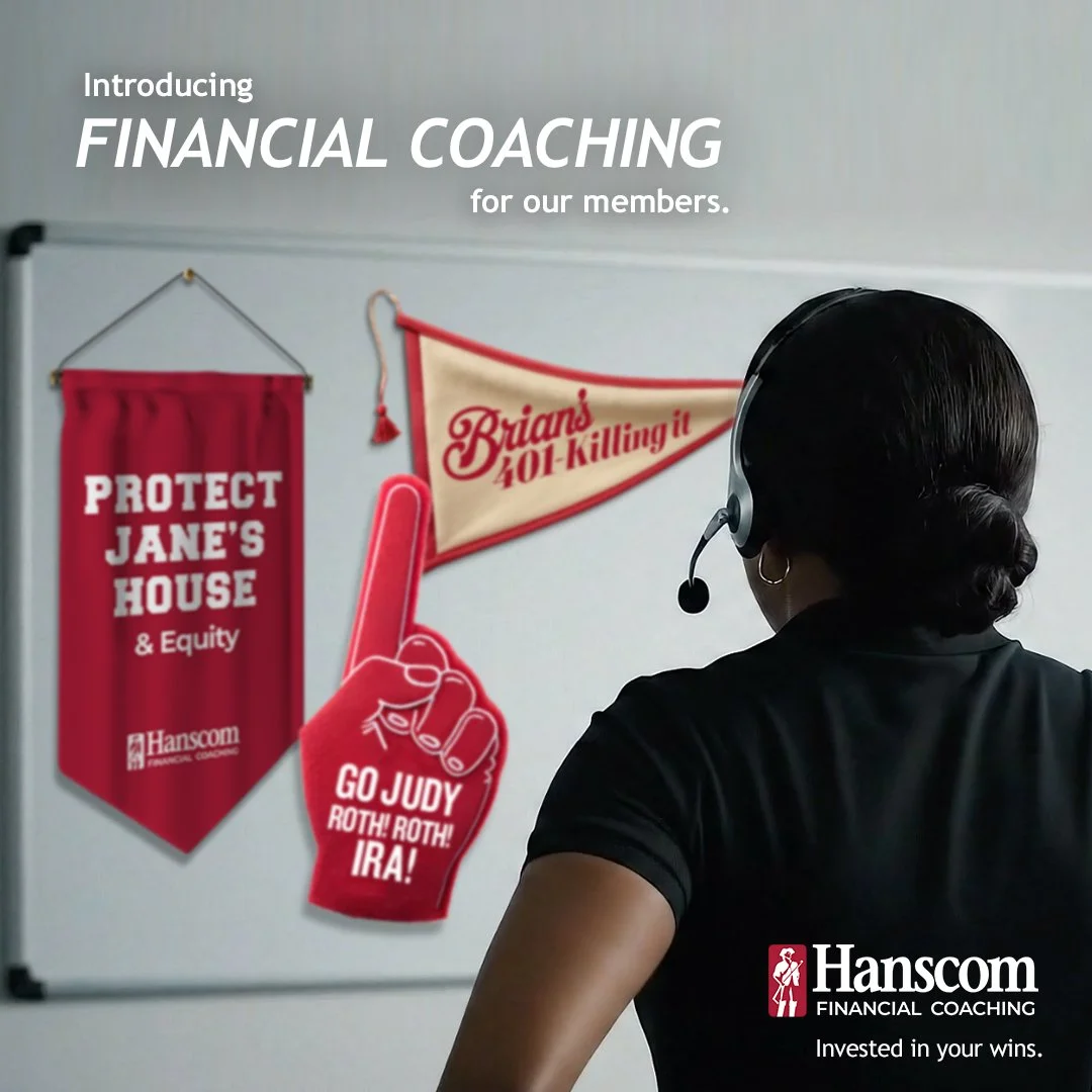 As a not-for-profit credit union, Hanscom invests all revenue back into member benefits, like their Financial Coaching program. So to spread the word about that all-new offering, we paired financial milestones with classic sports tropes to convey that Hanscom is only invested in your wins.